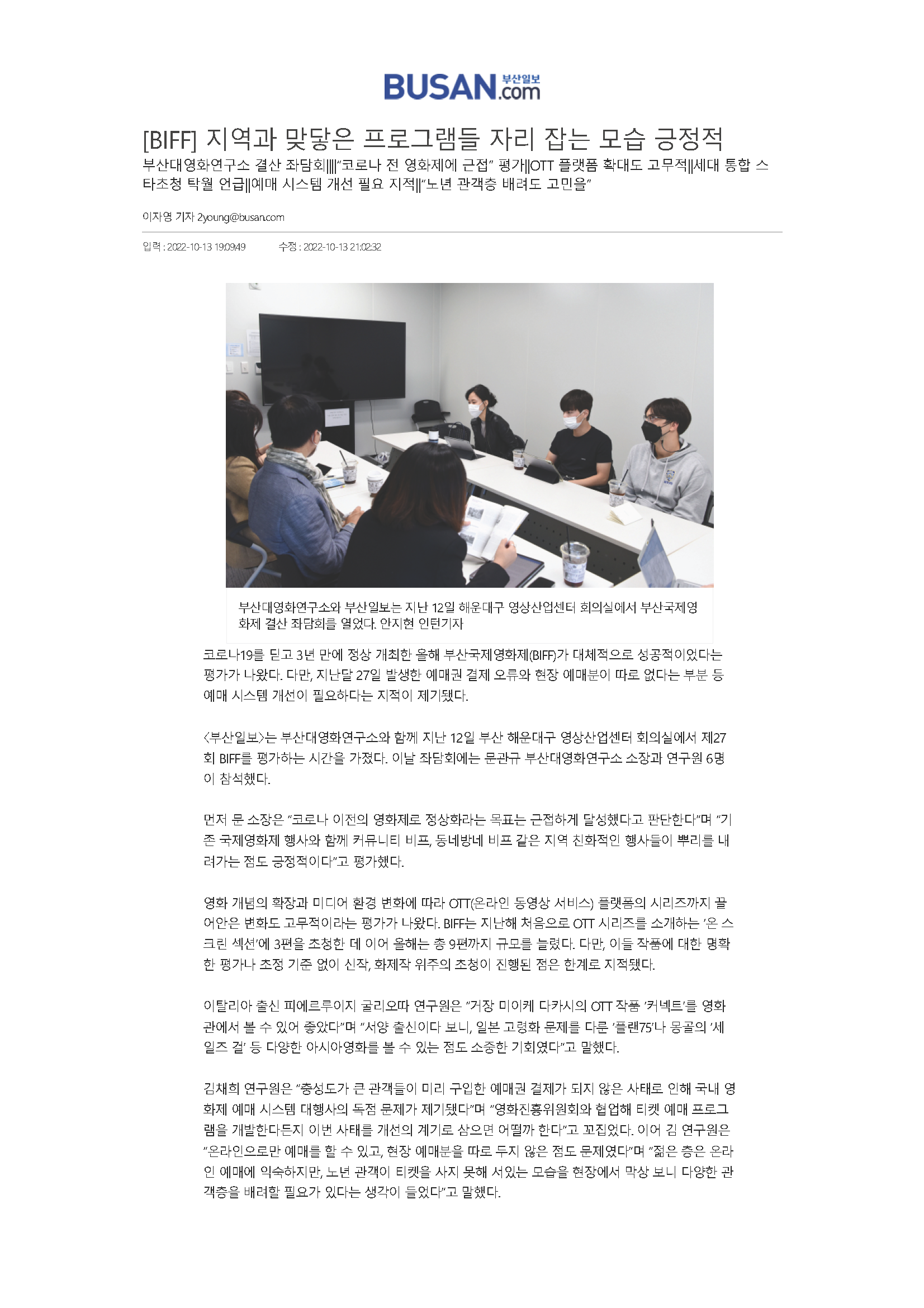 2022-10-13 부산대 영화연구소, 제27회 BIFF 결산 좌담회