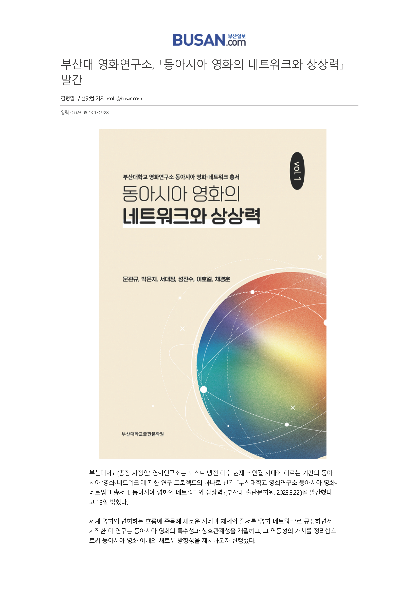 1. 부산대 영화연구소, 『동아시아 영화의 네트워크와 상상력』 발간 - 부산일보 (busan.com)